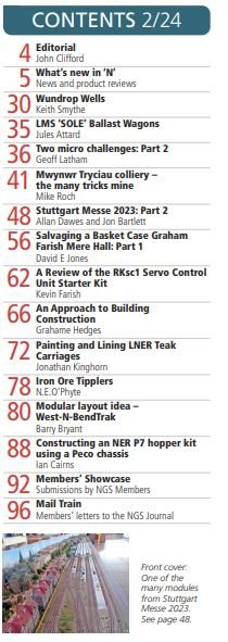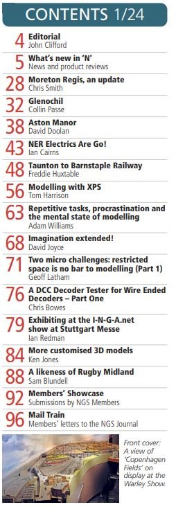 Its aims are to encourage and support railway modelling in general and N gauge modellers in particular. We try to include a wide range of articles, from basic simple type suitable for the beginners, right up to the more complex for the most fastidious and enthusiastic modeller, so that the journal is `inclusive` for all members. It aims to be inspirational, instructive and supported with photographs, plans and diagrams.